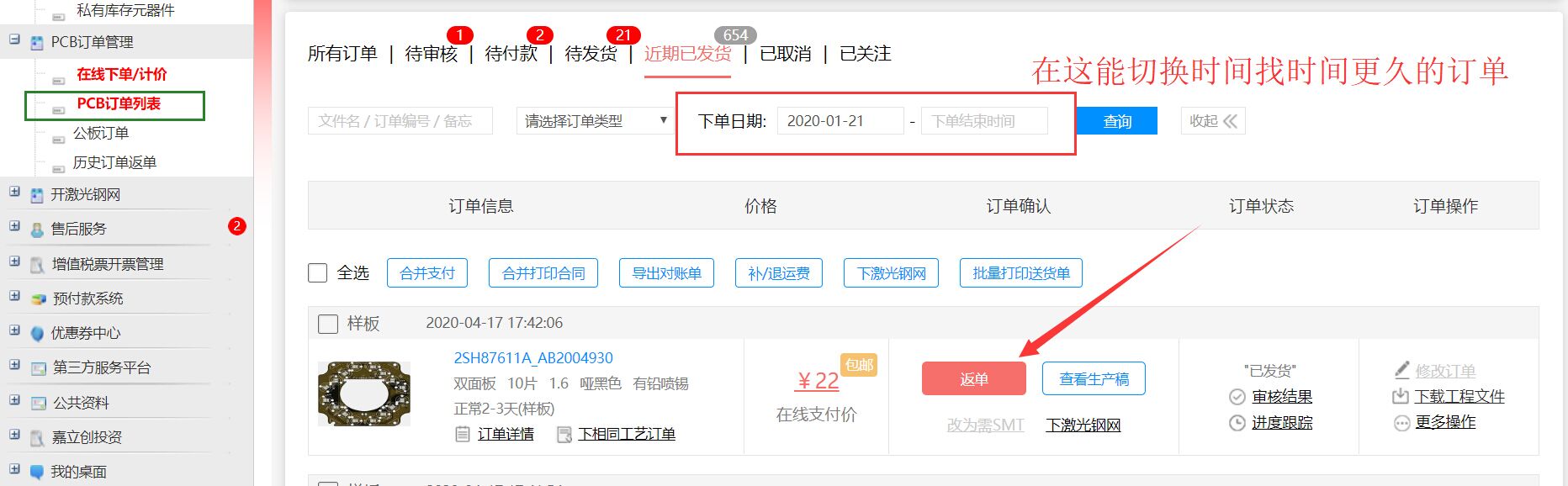 1)此情況嘉立創(chuàng)在2016年5月16號,支持此功能,也就是說樣板是單片,小批量是拼版,用樣板訂單直接返單,然后選擇拼版方式就行了,方便簡單