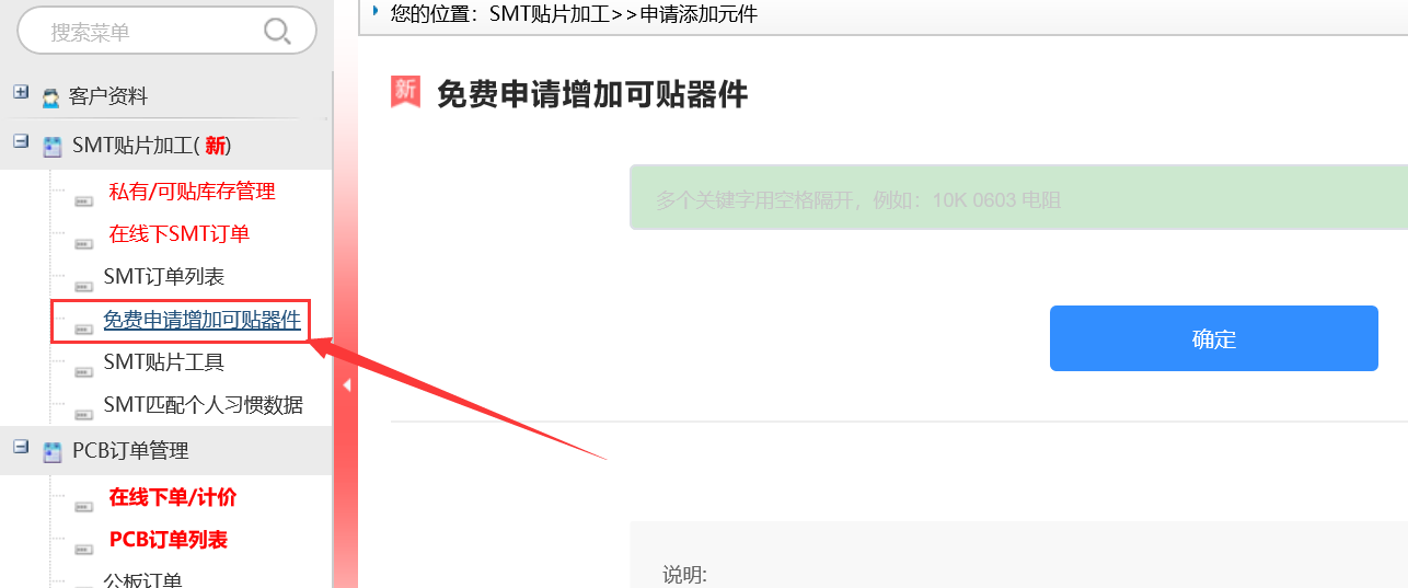 1)如果在可貼元器件列表中沒有,則免費(fèi)申請加可能器件