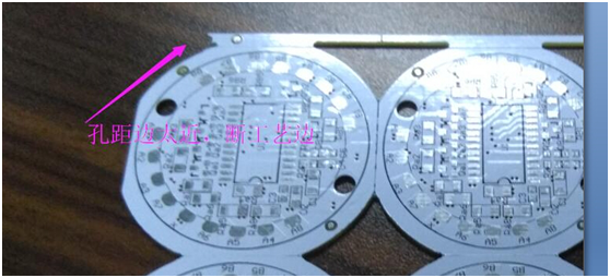 如下圖,拼板工藝邊寬4.5mm孔4mm 又是懸空的,容易導(dǎo)致斷工藝邊,
