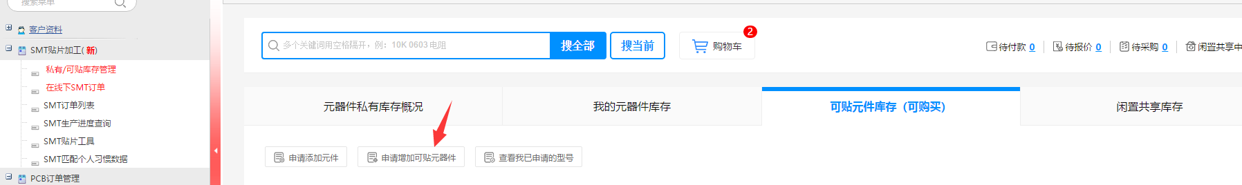 在可貼列表內(nèi)沒有到找您需要的型號,可以先申請增加型號。等型號審核通過后,就可以預(yù)訂器件。