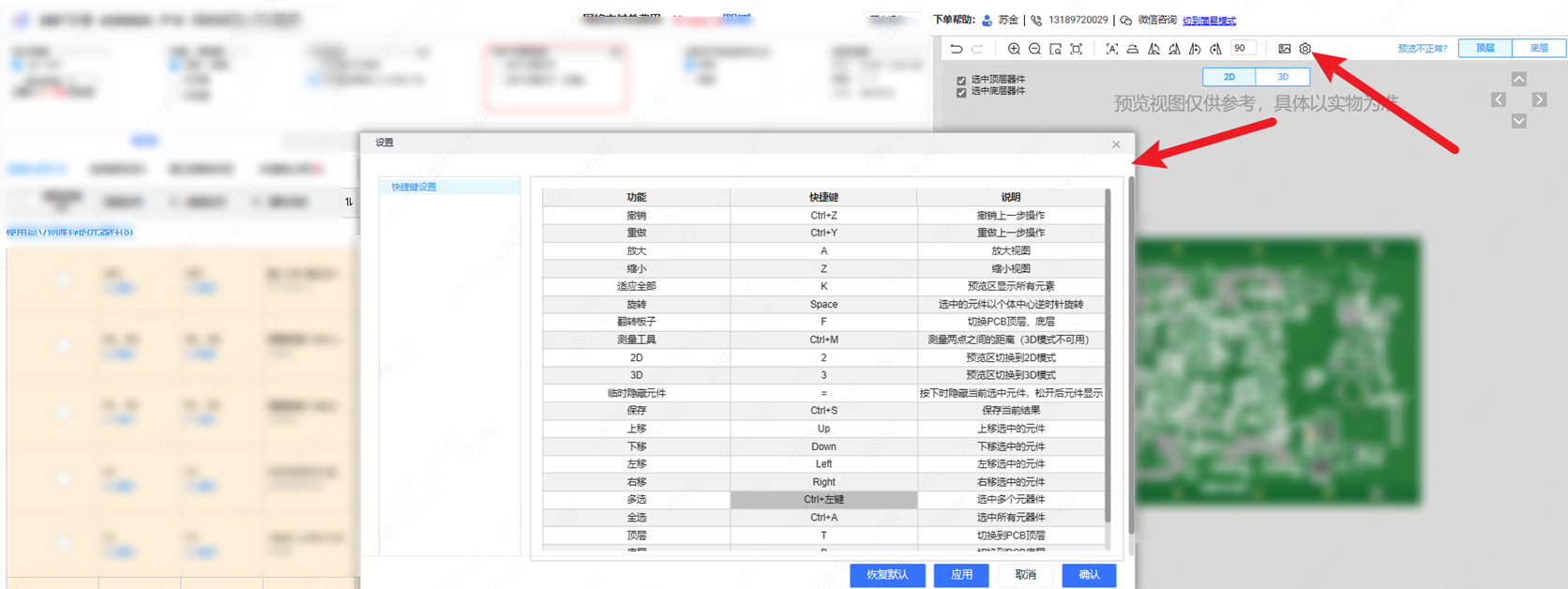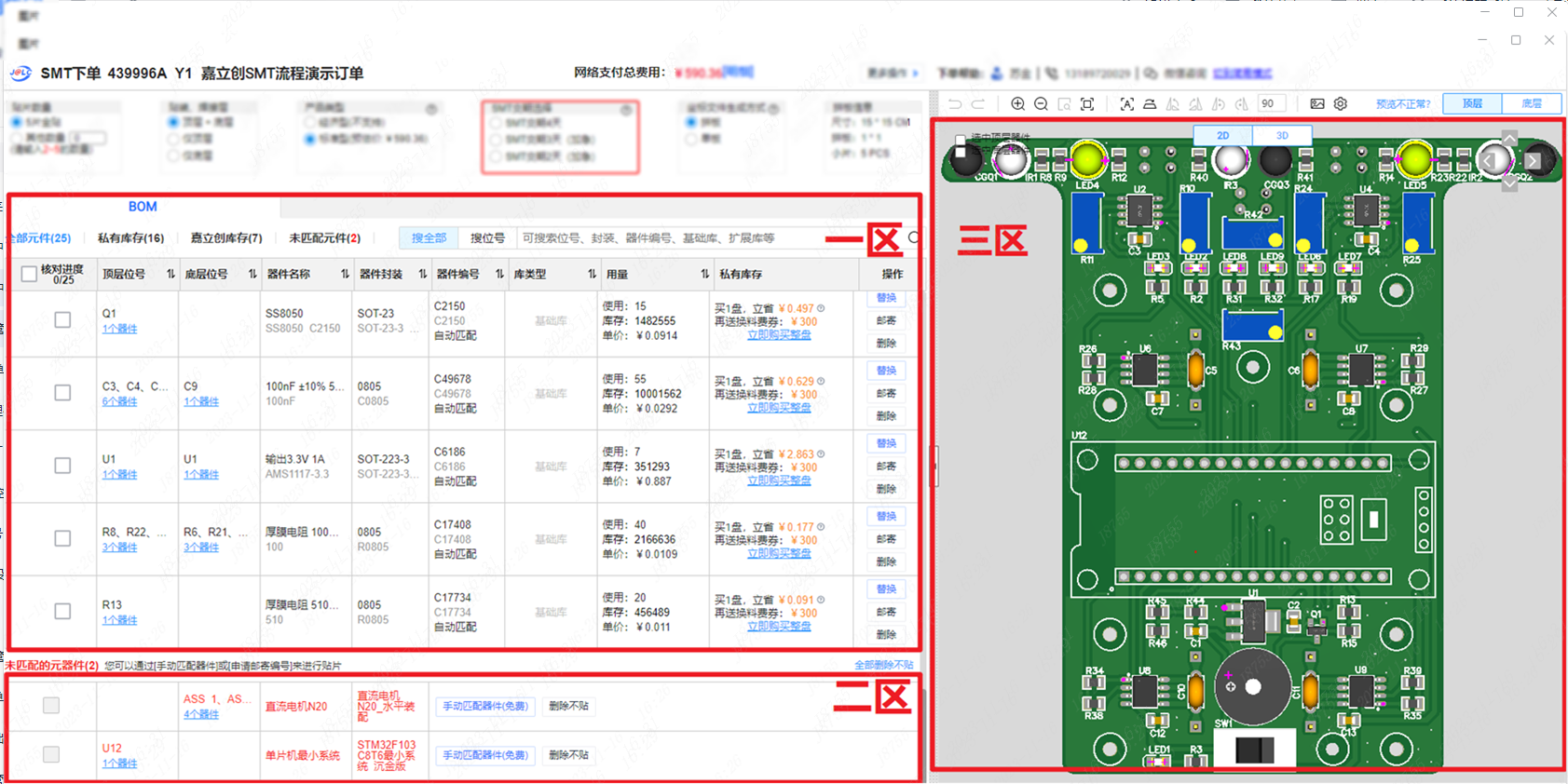 3. 三區(qū)是預(yù)覽2D ,3D模式,選上的器件都會(huì)在2D 3D圖顯示,方便客戶更直觀的查看。