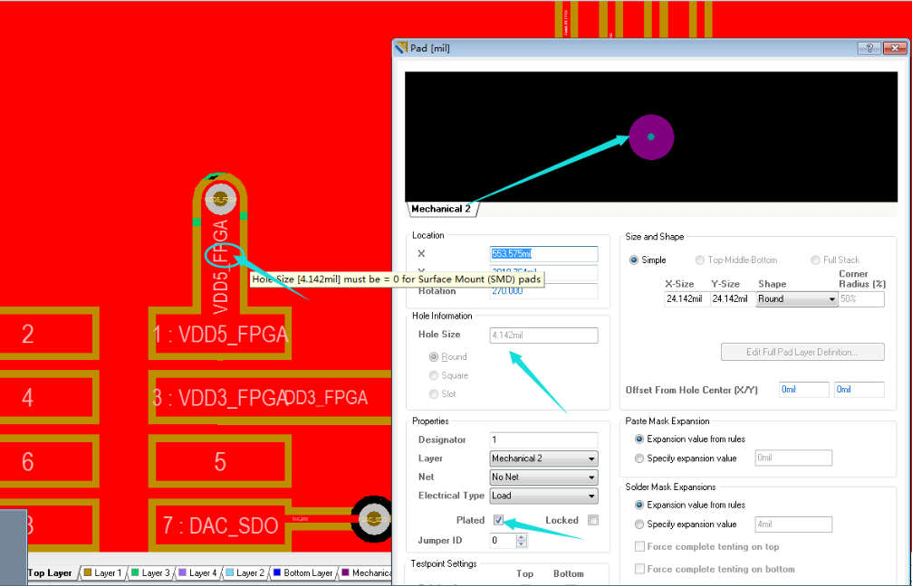 提醒!提醒!提醒!?。D16以前的版本,焊盤孔放置機械層,內徑孔將直接替換為0。