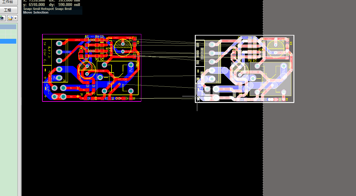今天具體來說說在線路板打樣的時候,陰陽板拼板方法。其實就是將所畫的PCB圖的TOP層變?yōu)锽OTTOM層,BOTTOM層變?yōu)門OP層進(jìn)行拼板。