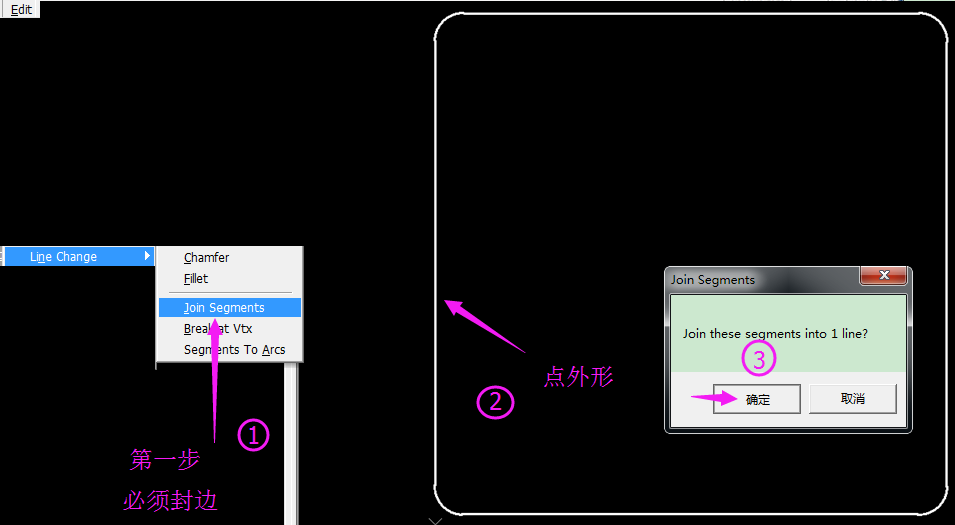導(dǎo)入的邊框線是節(jié)點(diǎn)線,我們要變成一個整體