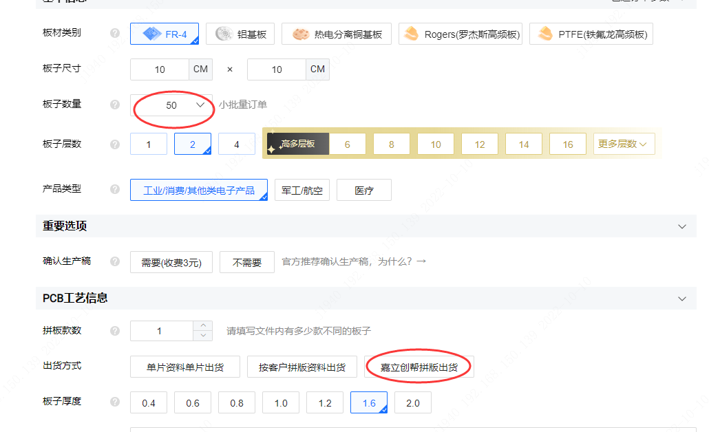 1、PCB 下單數(shù)量在≥50套(小板)的時候,可以選嘉立創(chuàng)幫拼版。