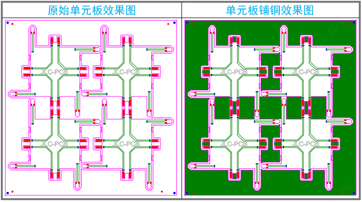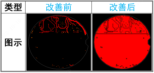 為了避免殘銅率過低引起填膠量不均勻引起板厚公差大,以及不均勻鋪銅導(dǎo)致電鍍不均等品質(zhì)隱患,我們將對所有多層板增加銅面: