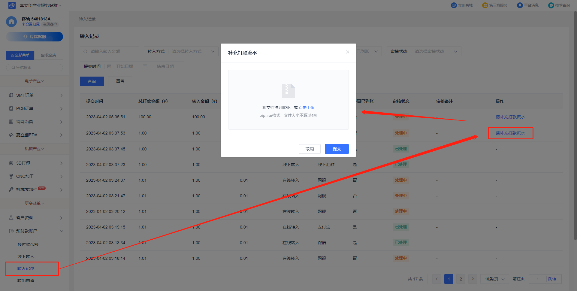 線下充值沒有到帳怎么辦(補(bǔ)充打款流水)