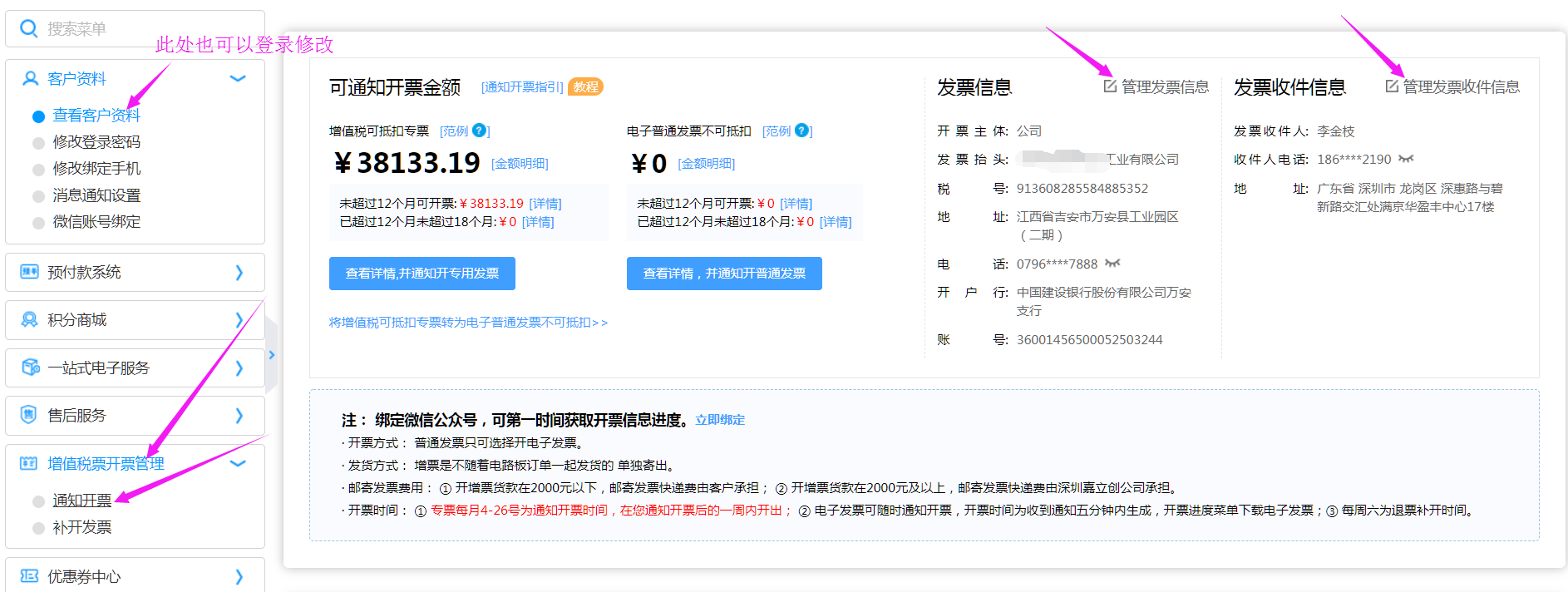 在:客戶資料---查看客戶資料也可以修改,但是我個人覺得在增值稅發(fā)票管理那里較為方便,個人喜好;