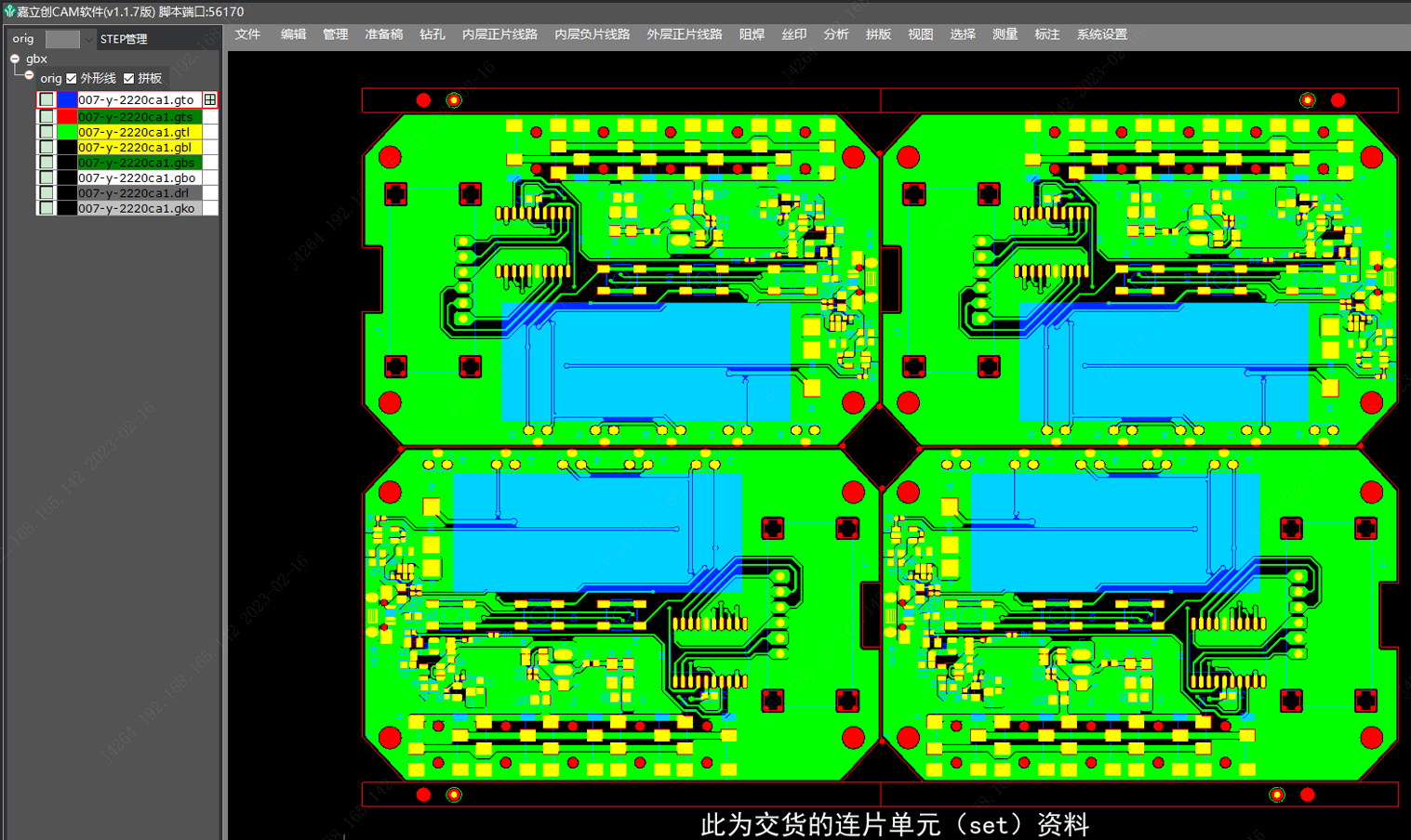 此下單文件一般是在其它PCB工廠生產(chǎn)過的大片拼板文件(panel),這類文件就可能超過20M,因其是把多個交貨單元的板重復(fù)拼在一張長寬0.5米左右的大片板上面生產(chǎn),然后在生產(chǎn)完后鑼邊成型分開成一個個交貨單元板包裝出貨。