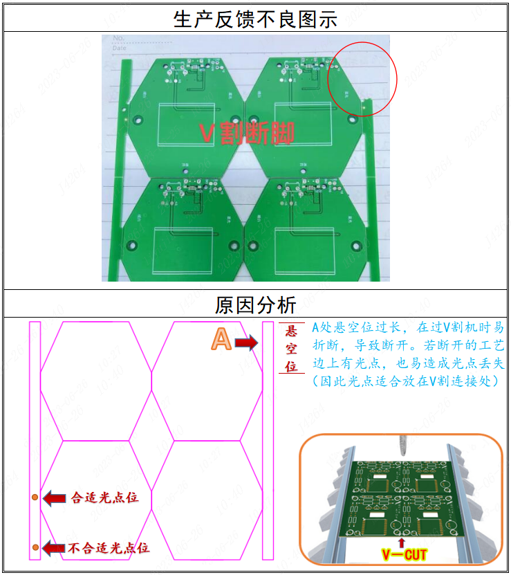 設(shè)計優(yōu)化:V割板邊懸空位過長易斷