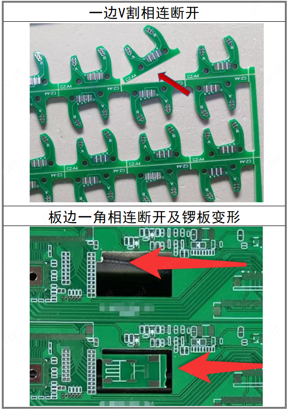 在實際生產(chǎn)中,有時會遇到一邊V割或是一角相連,此類在生產(chǎn)中易脫落或是鑼板變形,不論是郵票孔還是V割,一定要注意至少相對的兩條邊都需要有支撐連接位。