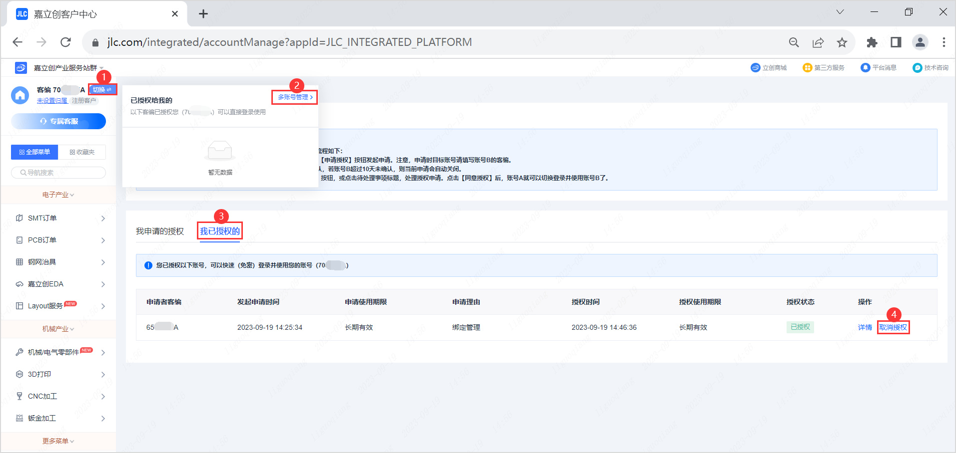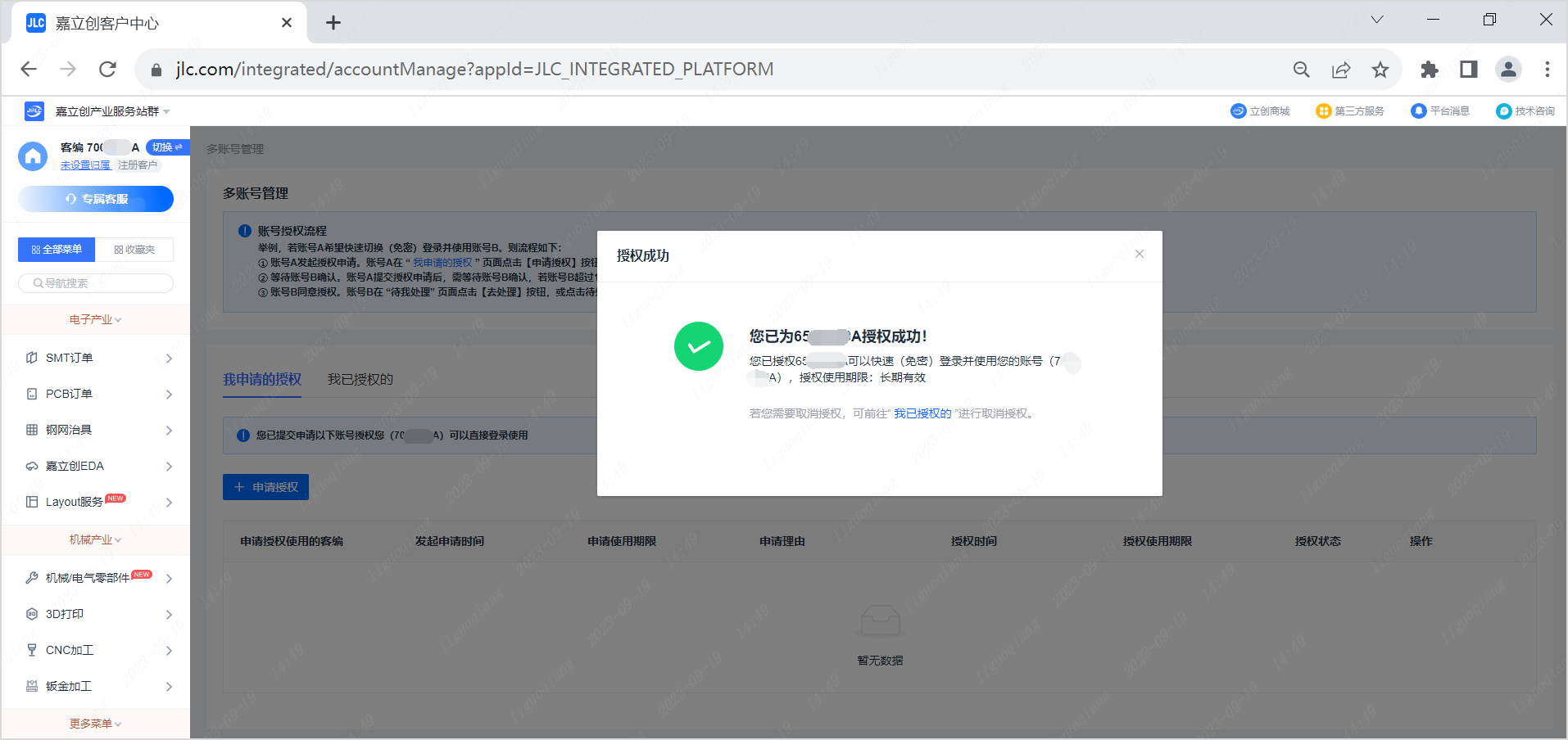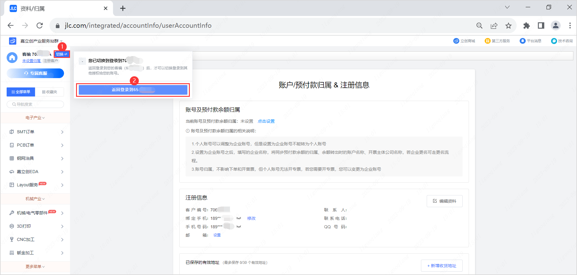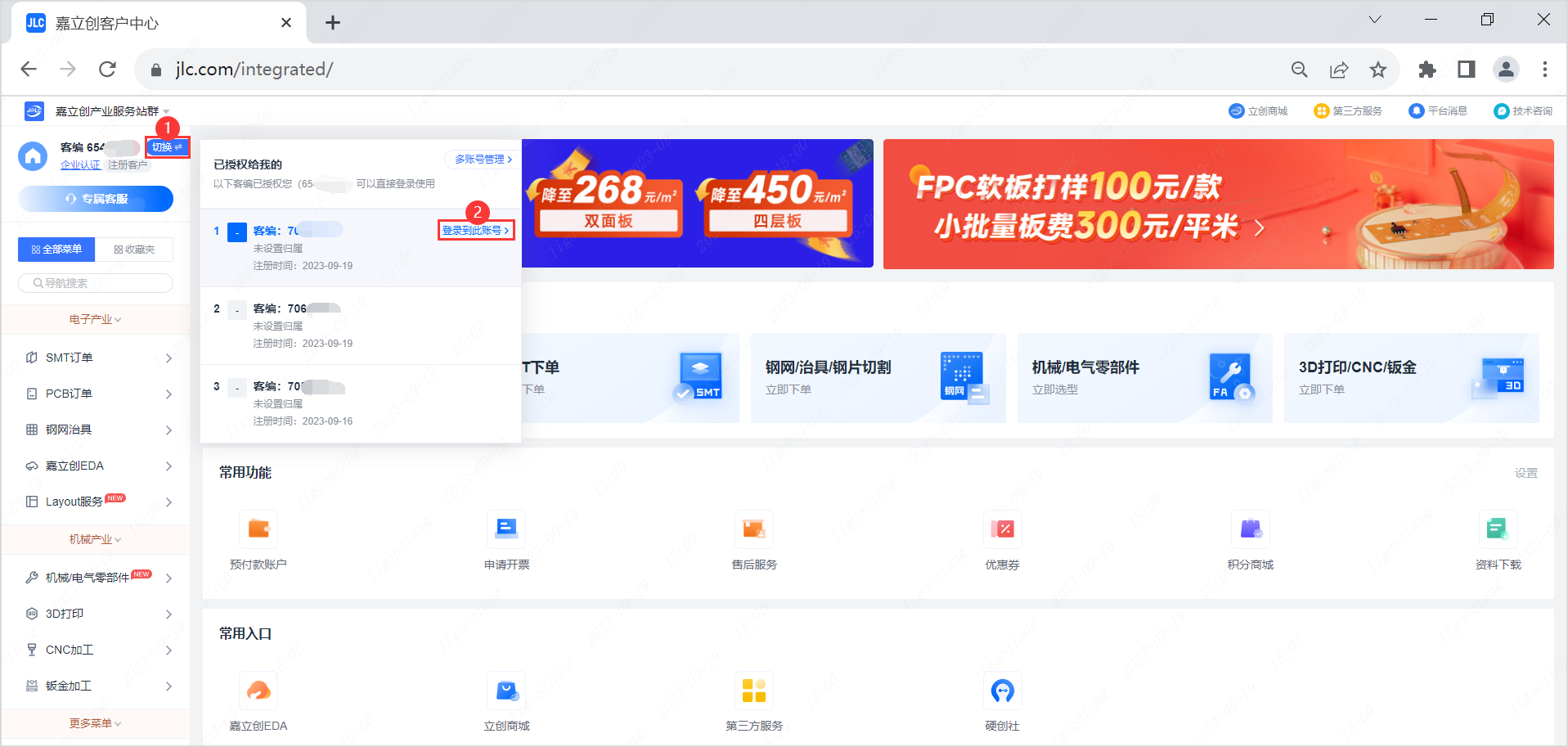 為了提升您賬號(hào)在嘉立創(chuàng)平臺(tái)上的使用便利性和靈活性,我們對(duì)多賬號(hào)進(jìn)行了管理功能完善,正式上線了 “ 多賬號(hào)管理 ” 和 “ 快捷切換賬號(hào)” 功能服務(wù)。