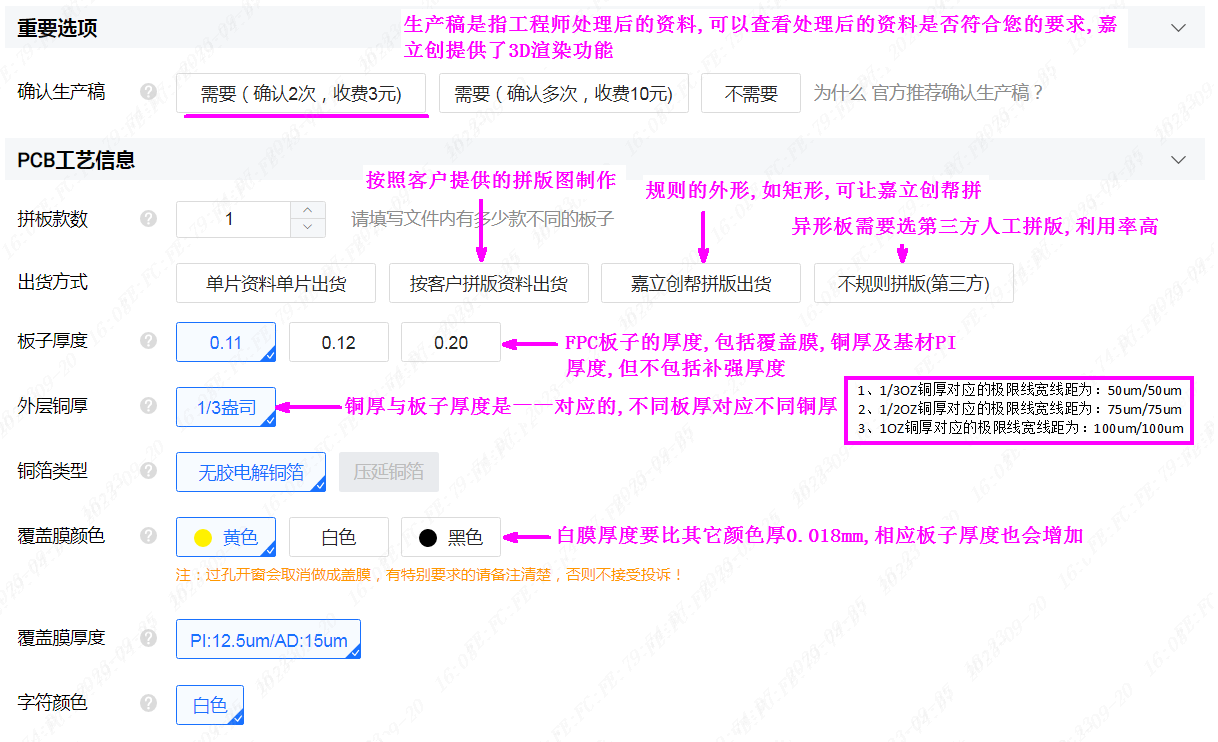 11.審核后可以付款,生產(chǎn)稿完成后需要確認(rèn)生產(chǎn)稿,然后等板子到手就可以了。需要拼版的板,做SMT的話,需要等PCB審核后才能下SMT。提交訂單后建議關(guān)注【嘉立創(chuàng)FPC】公眾號,可隨時查看生產(chǎn)進(jìn)度信息。