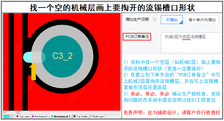 在PCB進(jìn)行機(jī)器組裝器件時(如波峰焊),為了防止部分需要二次焊接的元器件的焊盤堵孔,就需要在PCB焊盤上面開個過錫槽,以便過波峰焊時,這些焊錫會流掉。